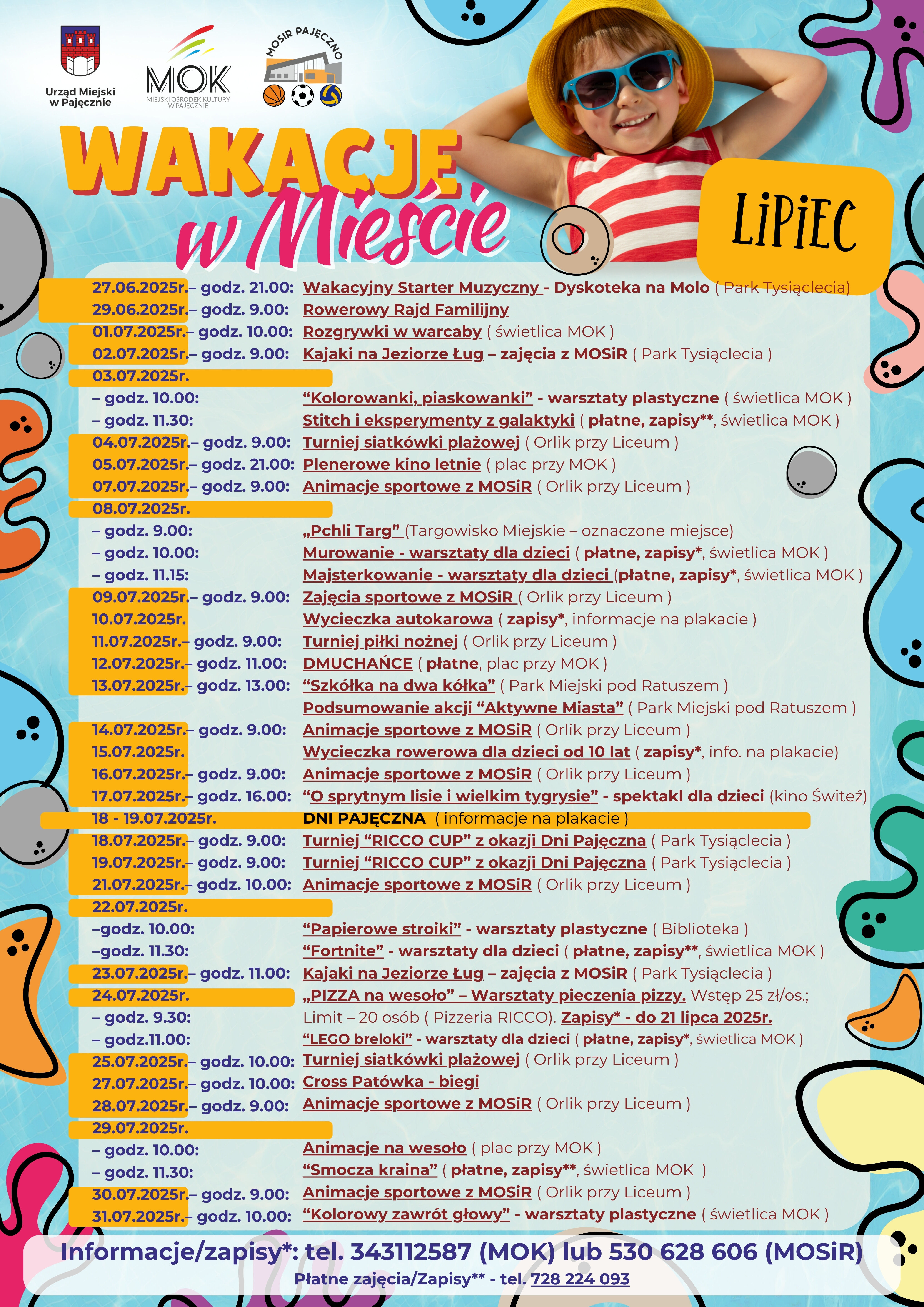MOK wraz z MOSIR ponownie organizuje dla was akcję "Wakacje w mieście", oferując różnorodne zajęcia i imprezy dla dzieci i młodzieży. Zapraszamy na wycieczki, warsztaty, seanse filmowe i wydarzenia muzyczne.