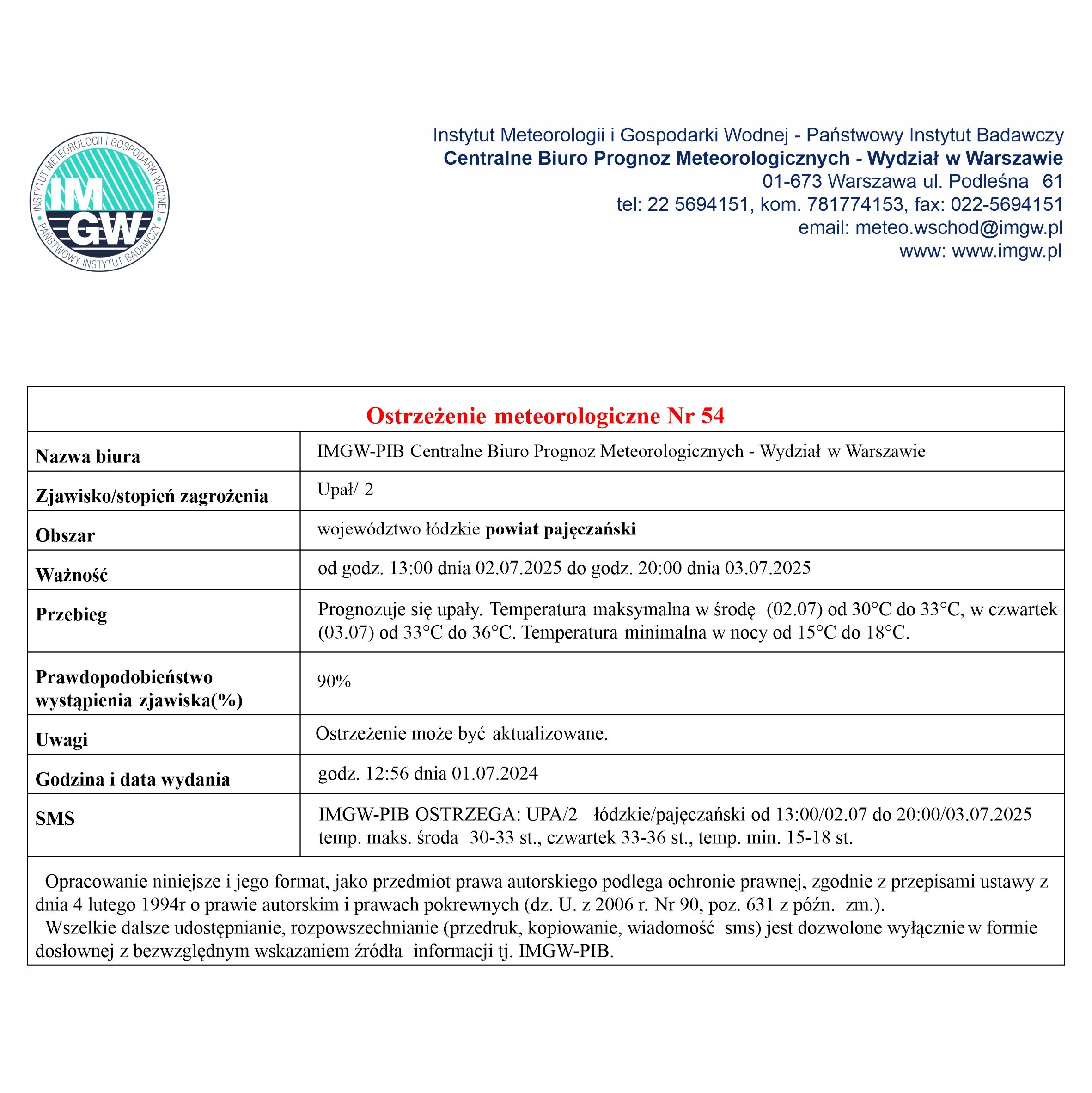 Ostrzeżenie meteorologiczne II stopnia - UPAŁ