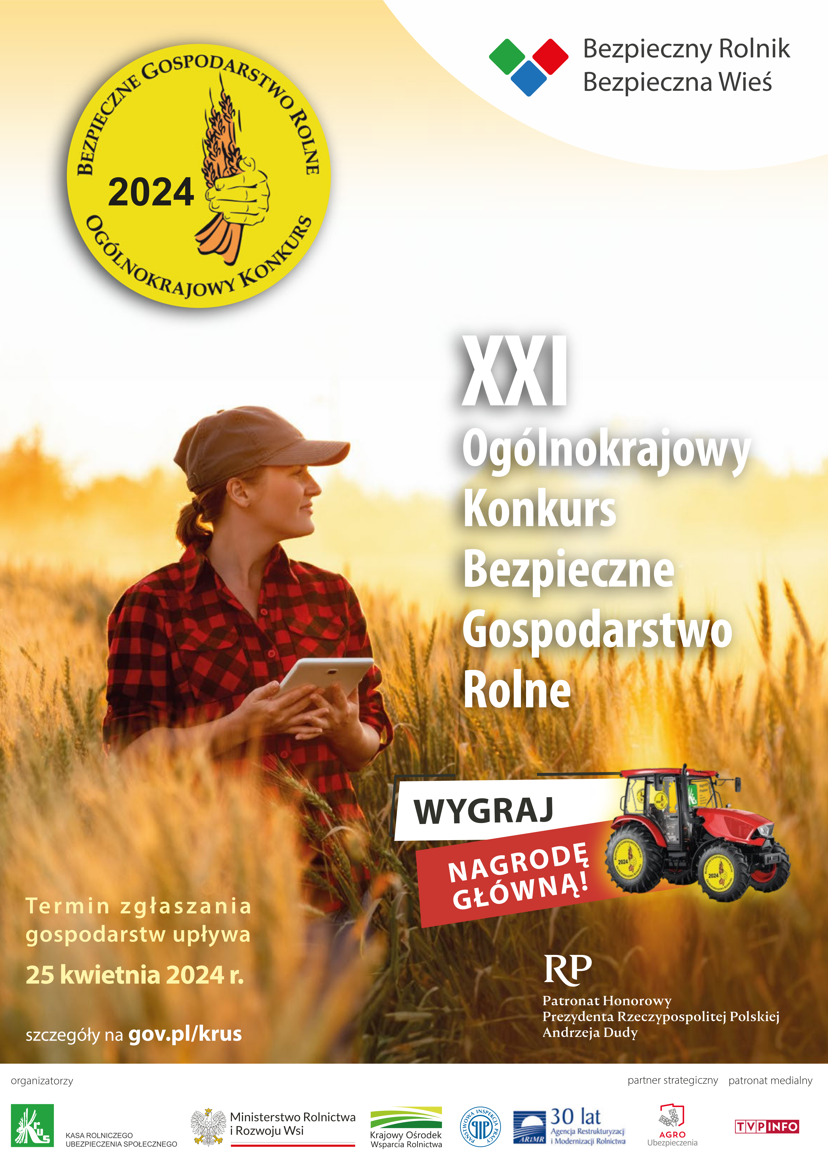 Kasa Rolniczego Ubezpieczenia Społecznego zaprasza do udziału w XXI edycji Ogólnokrajowego Konkursu Bezpieczne Gospodarstwo Rolne